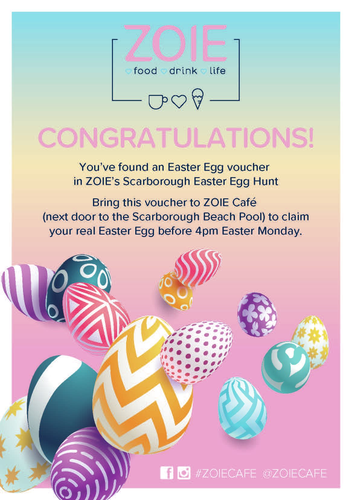 A unique coastal Easter hunt. Families can stroll along the Scarborough foreshore searching for hidden Easter cards and redeem them for chocolate treats.